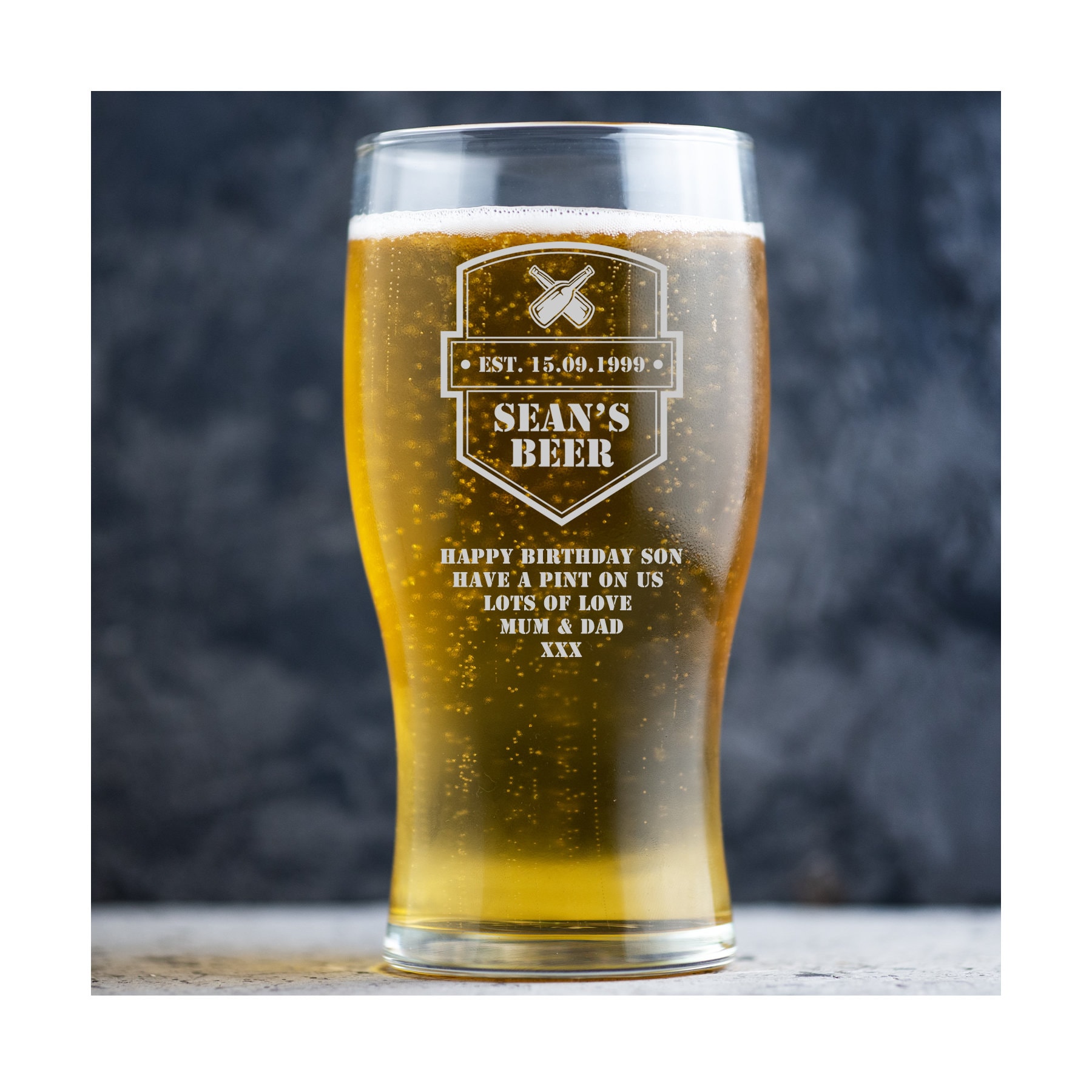 These personalized glasses also make a statement in your home bar or at special events. Simply choose the tissue and ribbon colour and your gift will be lovingly placed in either a gift bag or gift box, whichever is the. Our personalised beer glass is a fun gift for valentine's day, birthdays or stocking fillers.for that extra special touch, we are pleased to offer our quality gift packaging complete with a sweet acrylic tag engraved with 'an extra special gift just for you'. All available with quick engraving and fast shipping. Read reviews for engraved pilsner beer glass, glass/glass, by things remembered. We will then expertly engrave your glass and deliver it straight to your door. Engraved glassware is super easy to design and customise, just select the glass. Perfect for dad, the groom & his groomsmen, these beer glasses can be personalised with the text of your choice. Create a special gift perfect for any beer lover with our selection of personalised pint glasses and tankards. Personalized with their name or a fun drinking message, these glasses make the perfect gift for groomsmen, best friends or family reunions! All of the best promotional beer glasses are available to you online every day at 4allpromos. How to make personalized beer glasses. Our range of personalised pint glasses let you choose a design and then personalise it with a name, message, age or other option dependent on the design.
